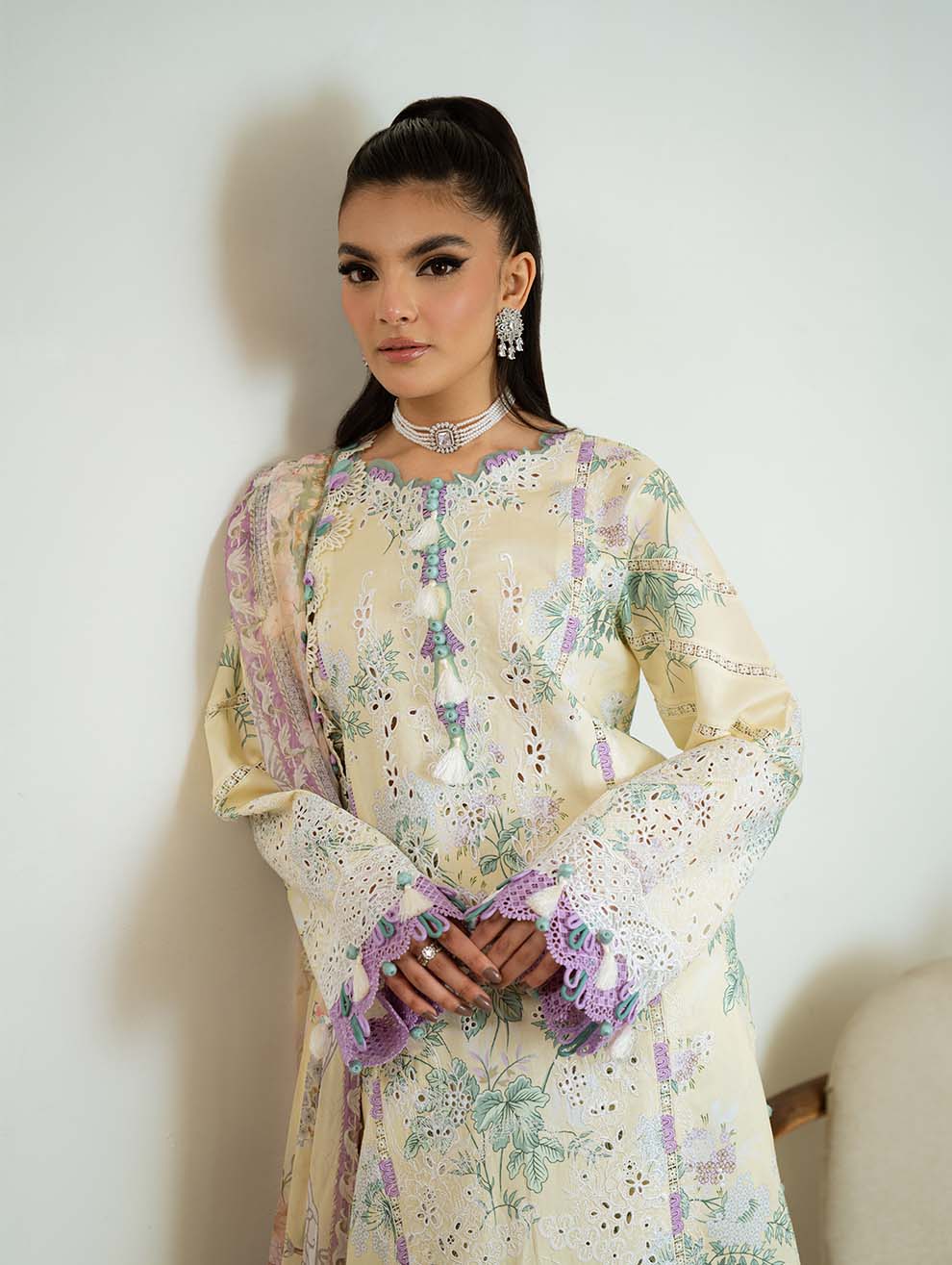 3M Digital Printed Chikan EMB Lawn Shirt