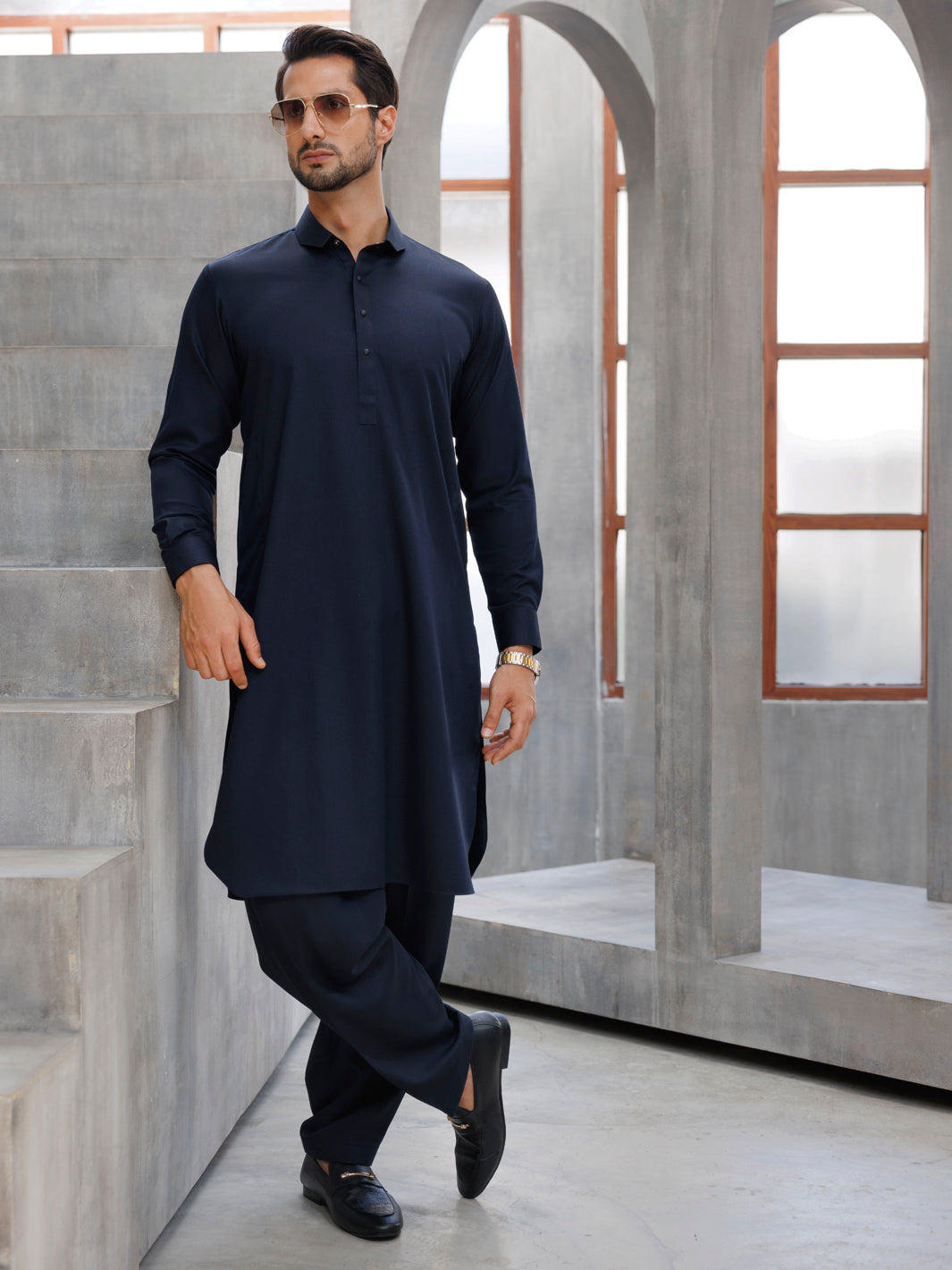 Be the first to review “Navy Blue Blended Kameez Shalwar”